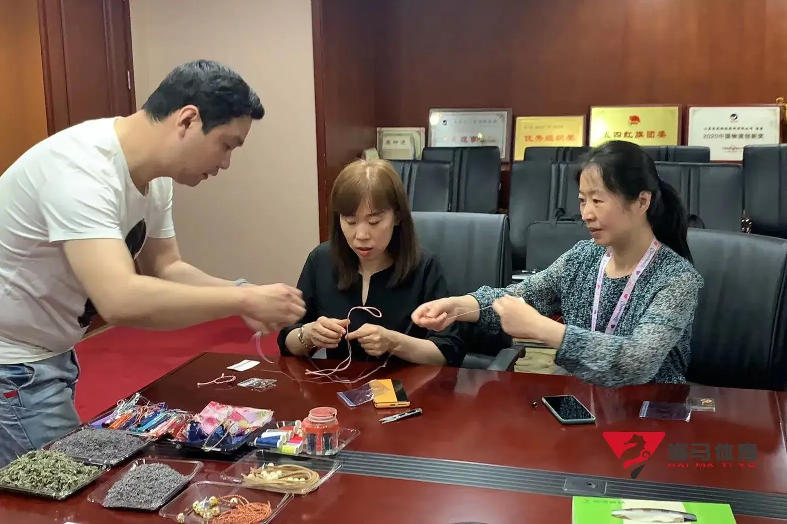 制作前,乐虎的手工老师首先介绍了端午的习俗以及端午节制作香囊与五彩绳的来历,让大家在活动前了解端午的民俗文化,手工老师将精心准备的有着美好寓意的五色彩绳、色彩绚丽的香包袋以及清香的艾草薰衣草,送到职员手中,携手制作香包和五彩绳。